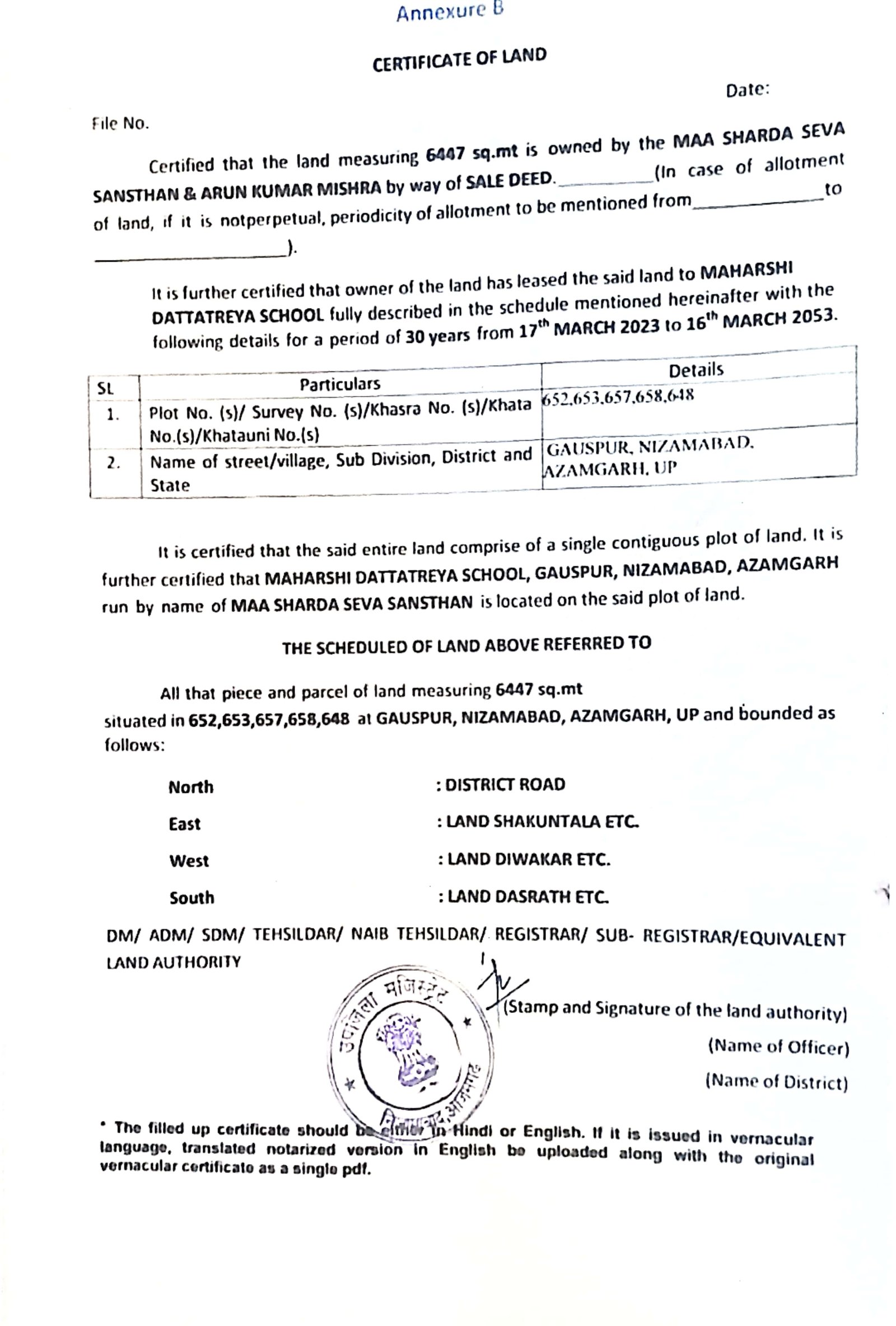 | 1 | NAME OF THE SCHOOL | MAHARSHI DATTATREYA SCHOOL |